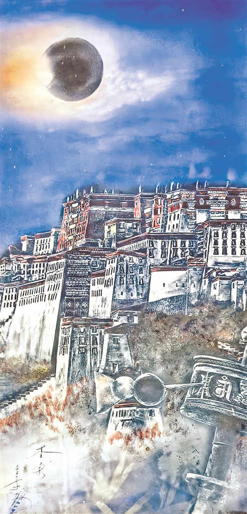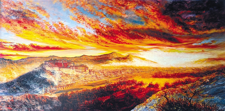 圖為瓷板畫作品《霞光中的布達(dá)拉宮》。