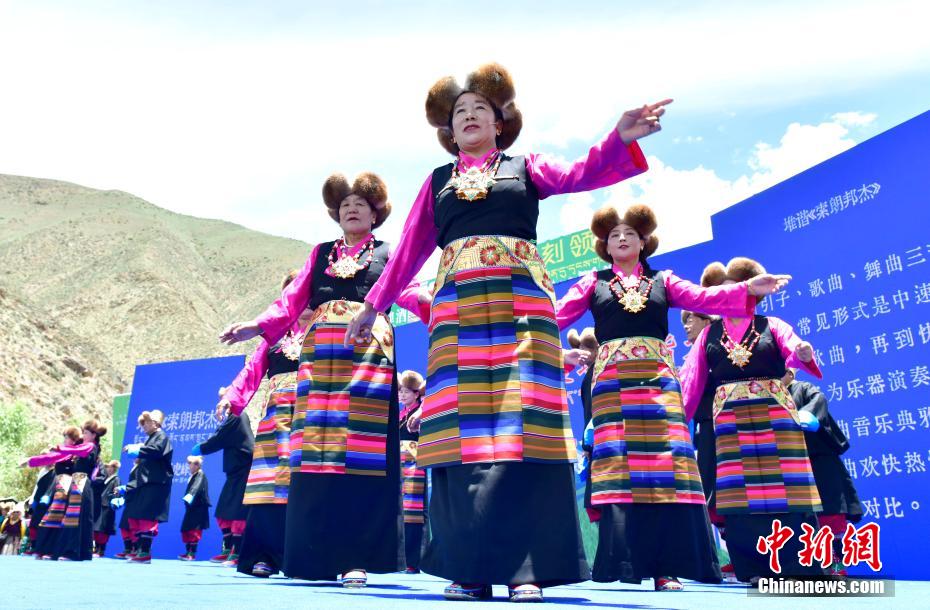6月28日,拉薩首屆林卡囊瑪堆諧大賽在達孜區(qū)舉辦。現(xiàn)場,經(jīng)過前期海選入圍的19支隊伍依次上臺競技。囊瑪和堆諧,合稱囊瑪堆諧,是西藏民間歌舞發(fā)展到較高層次、集歌舞樂為一體的珍貴傳統(tǒng)文化藝術(shù)遺產(chǎn),深受當?shù)孛癖姷南矏叟c追捧。圖為首屆林卡囊瑪堆諧大賽比賽現(xiàn)場。