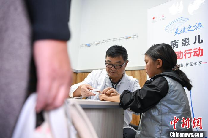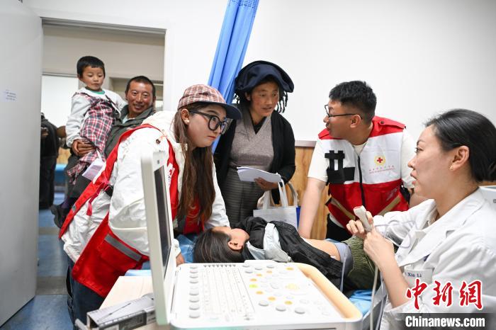 7月1日,中國紅十字基金會“天使之旅”2025西藏先心病患兒篩查救助行動在拉薩市人民醫(yī)院正式啟動。據(jù)悉,中國紅十字基金會自2013年以來,已在西藏開展20余次相關行動,覆蓋西藏7市地,救助患兒843名 。圖為專家為兒童進行篩查?!≈行律缬浾?貢嘎來松 攝