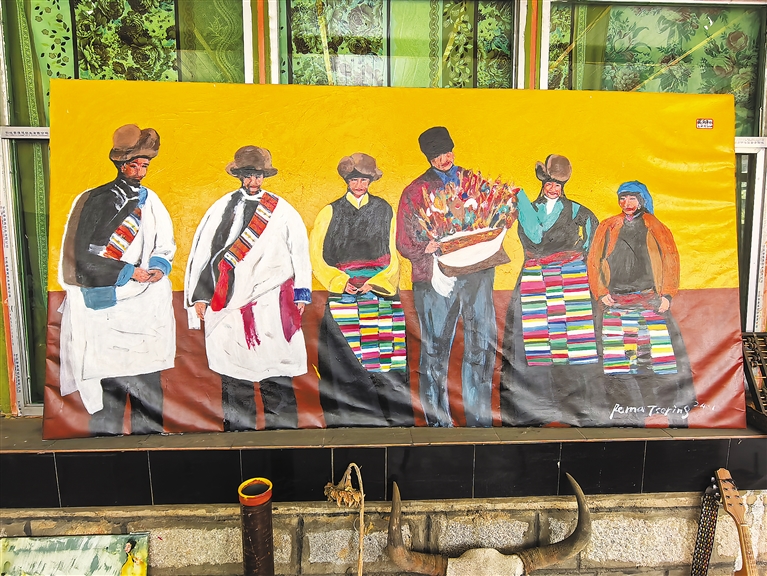 圖為白瑪次仁正在進(jìn)行創(chuàng)作。