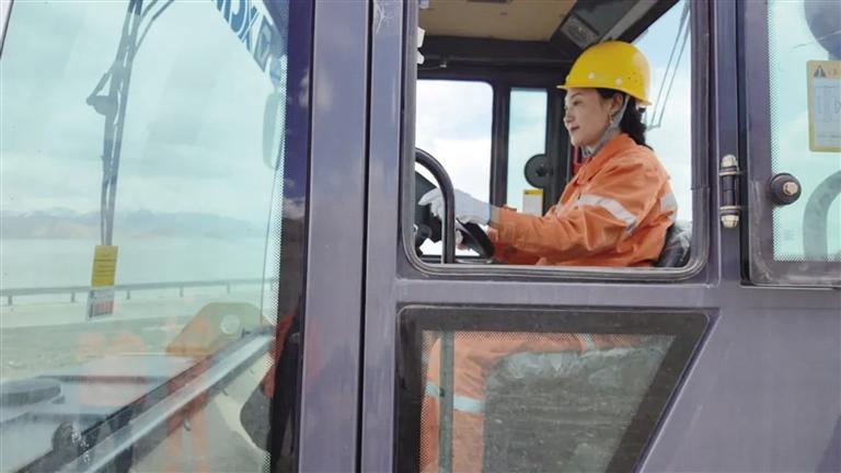 每當(dāng)她看到滯留在風(fēng)雪中的車隊緩緩?fù)ㄟ^,司機(jī)們鳴笛致意的瞬間,所有的艱辛都化作了驕傲。大型機(jī)械全能操作手卓瑪措姆,已成長為綻放在雪域高原“天路”上的一朵美麗的“鋼鐵玫瑰”。