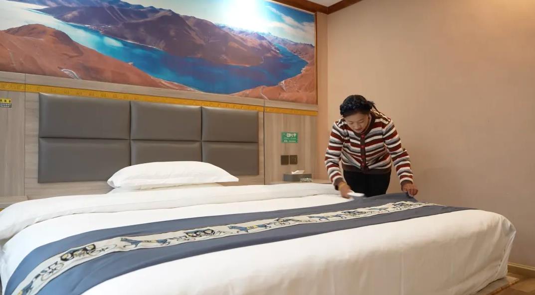 隨著登山探險(xiǎn)和生態(tài)旅游的熱潮不斷升溫,定日縣的扎西宗鎮(zhèn)、崗嘎鎮(zhèn)等地的居民紛紛轉(zhuǎn)型,開(kāi)民宿、當(dāng)向?qū)?、賣(mài)特產(chǎn),在家門(mén)口捧起了“金飯碗”,生活面貌煥然一新,發(fā)生了翻天覆地的變化。