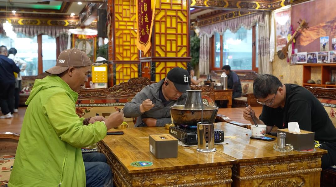 “以前全家靠放牧和種青稞過(guò)活,風(fēng)里來(lái)雨里去,一年攢不下幾個(gè)錢(qián)?,F(xiàn)在開(kāi)了這家藏式餐館,游客多的時(shí)候一天能接待上百桌,收入很好?!痹谠髯诖褰?jīng)營(yíng)餐飲的次央說(shuō)。