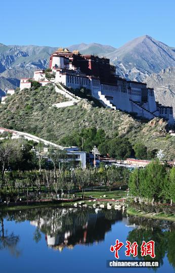 圖為拉薩團結(jié)公園水系倒映布達拉宮。貢嘎來松 攝