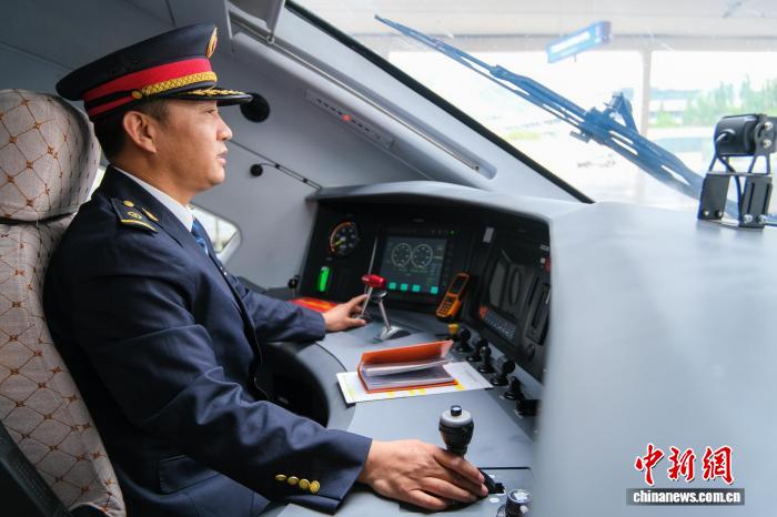 圖為6月20日,斯朗旺扎在高原復(fù)興號駕駛室,如今他已成為高原復(fù)興號動車組資深司機。中新網(wǎng)記者 江飛波 攝