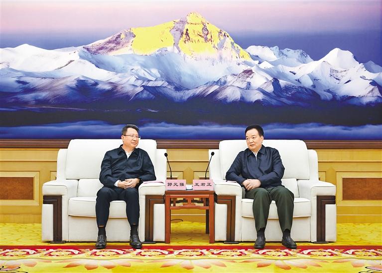 王君正代表自治區(qū)黨委、政府向郭元強(qiáng)一行表示歡迎,并簡(jiǎn)要介紹了西藏經(jīng)濟(jì)社會(huì)發(fā)展情況。他說,黨的十八大以來,以習(xí)近平同志為核心的黨中央高度重視西藏工作,習(xí)近平總書記多次作出重要指示批示,確立了新時(shí)代黨的治藏方略,明確了“穩(wěn)定、發(fā)展、生態(tài)、強(qiáng)邊”四件大事,提出了長(zhǎng)治久安和高質(zhì)量發(fā)展的戰(zhàn)略目標(biāo),為我們做好西藏工作指明了前進(jìn)方向、提供了根本遵循。自治區(qū)黨委團(tuán)結(jié)帶領(lǐng)全區(qū)各族干部群眾,深入貫徹習(xí)近平總書記關(guān)于西藏工作的重要指示和新時(shí)代黨的治藏方略,持之以恒抓好“四件大事”落實(shí),推動(dòng)各項(xiàng)事業(yè)不斷取得新成效。