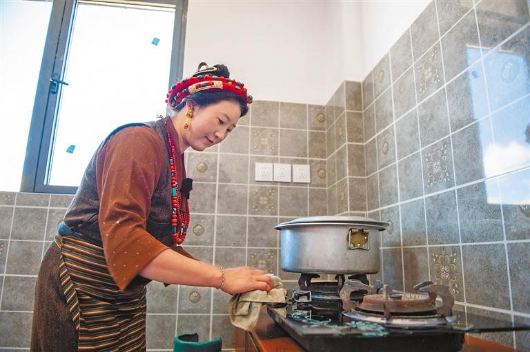 定結(jié)縣乃村村民在新房內(nèi)收拾廚房。記者 旦增嘎瓦 攝
