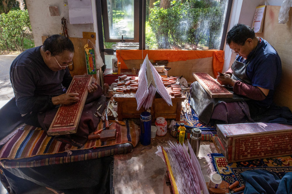 8月6日,一名雕刻師在雕刻中。西藏雪巴康雕版印刷制作技藝入選西藏自治區(qū)級(jí)非物質(zhì)文化遺產(chǎn)代表性項(xiàng)目名錄。