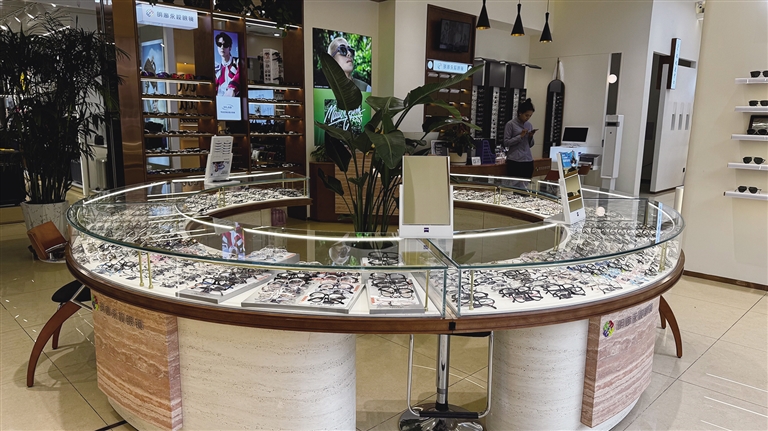在南樓一層,瑞幸咖啡的藍(lán)色招牌與霸王茶姬的紅色燈籠相映成趣,構(gòu)筑起高原最強的咖啡茶飲矩陣。澳免國際美妝區(qū)內(nèi),蘭蔻、雅詩蘭黛等全球品牌專柜整齊陳列,產(chǎn)品與區(qū)外同步上新且價格一致。明廊永視眼鏡店的乳白色柜臺前,驗光設(shè)備閃爍著科技微光,負(fù)責(zé)人彭春永介紹:“升級后加裝了藏式紋樣屏風(fēng),自動門和LED屏讓老店煥發(fā)新顏?!?/p>
