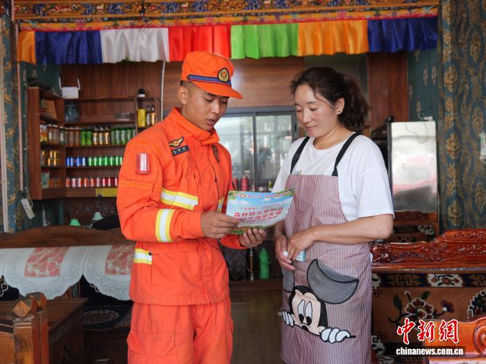 圖為消防隊(duì)員正在深入轄區(qū)沿街“入戶式”宣講防災(zāi)減災(zāi)知識。林芝市森林消防支隊(duì)供圖