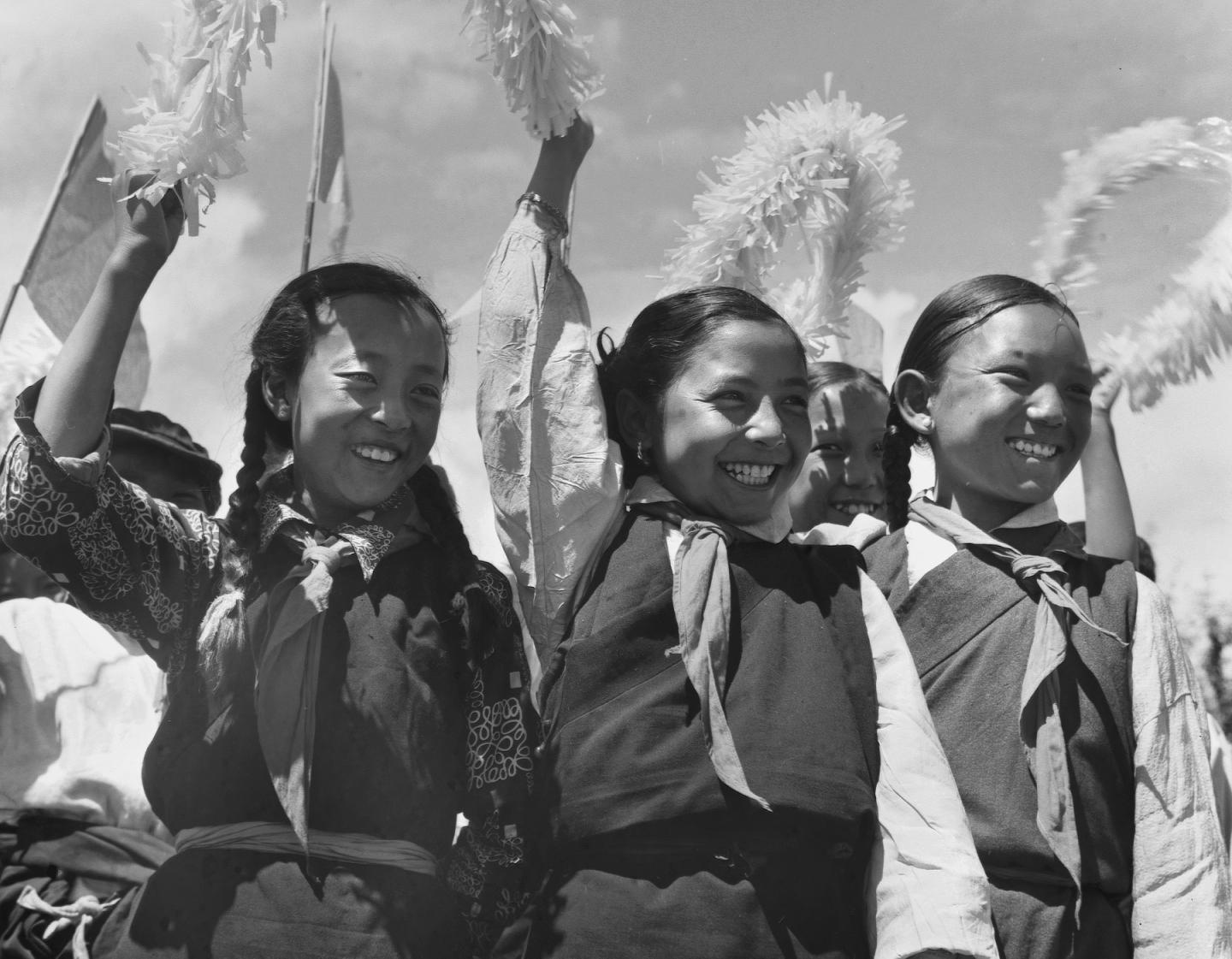 1965年9月,藏族兒童在西藏自治區(qū)成立大會(huì)上歡呼。新華社記者 馬競(jìng)秋 攝