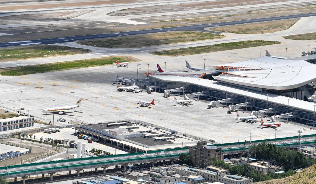 2024年6月3日拍攝的拉薩貢嘎國(guó)際機(jī)場(chǎng)停機(jī)坪。新華社記者 晉美多吉 攝
