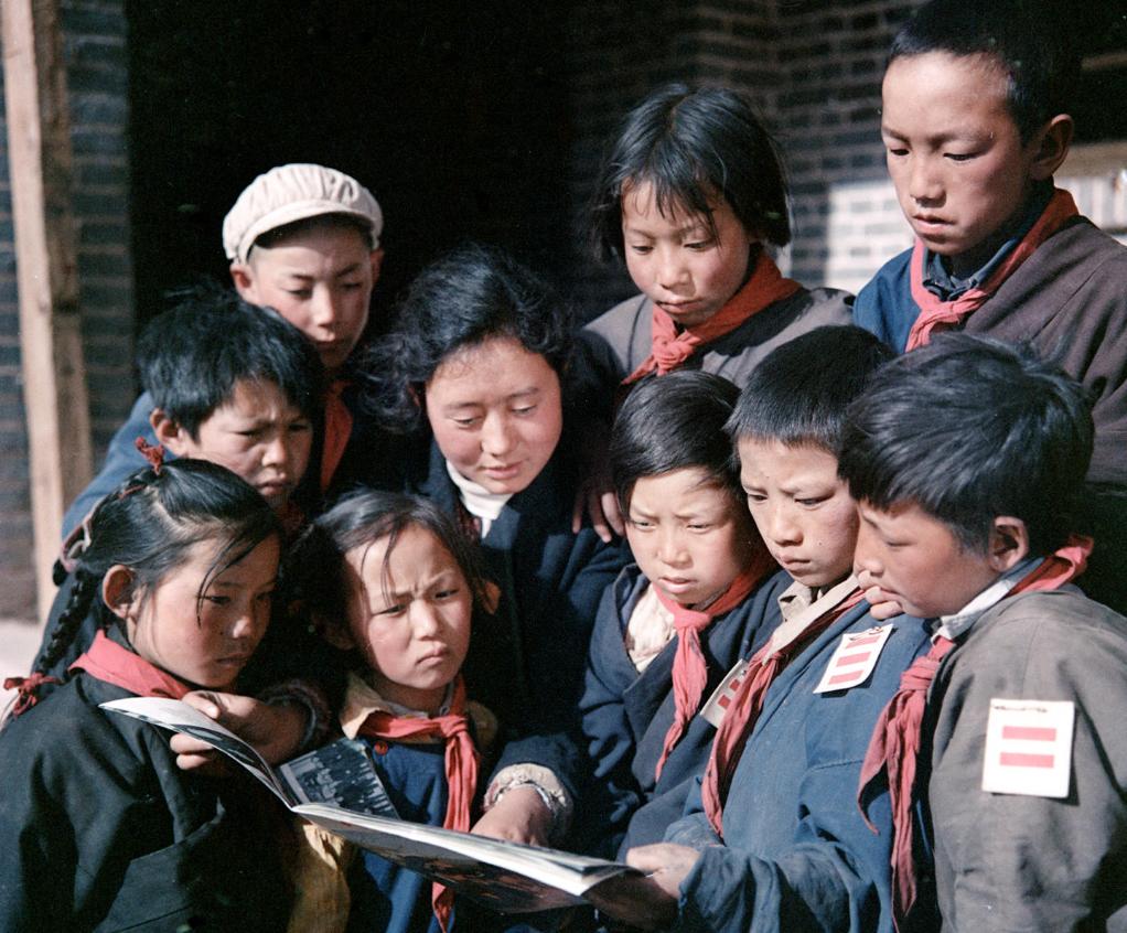 1965年9月,西藏昌都實(shí)驗(yàn)小學(xué)的老師和學(xué)生在看畫(huà)報(bào)。新華社記者 馬競(jìng)秋 攝
