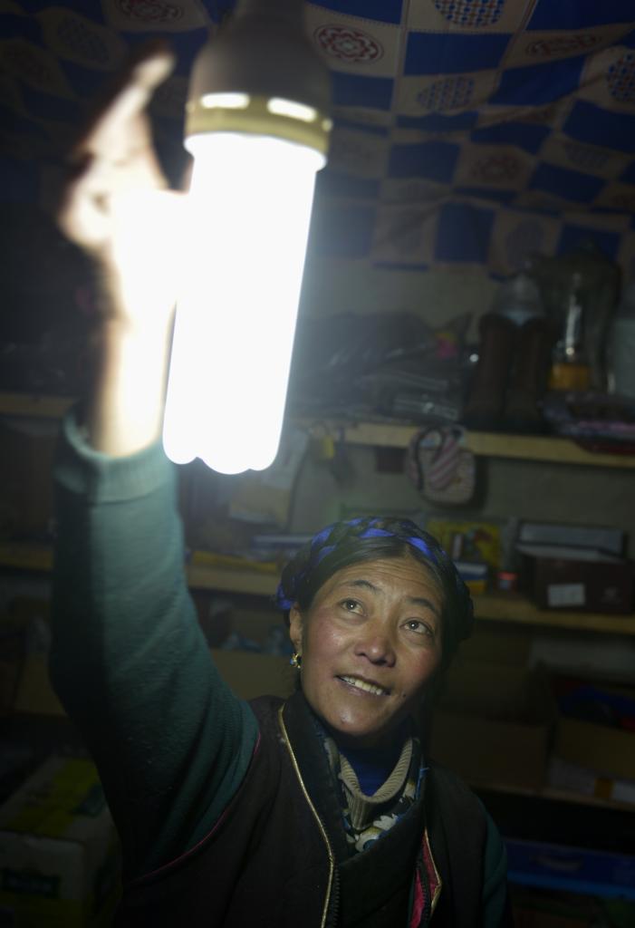 2013年6月7日,西藏浪卡子縣普瑪江塘鄉(xiāng)牧民在家里使用太陽(yáng)能照明設(shè)備。新華社記者 普布扎西 攝
