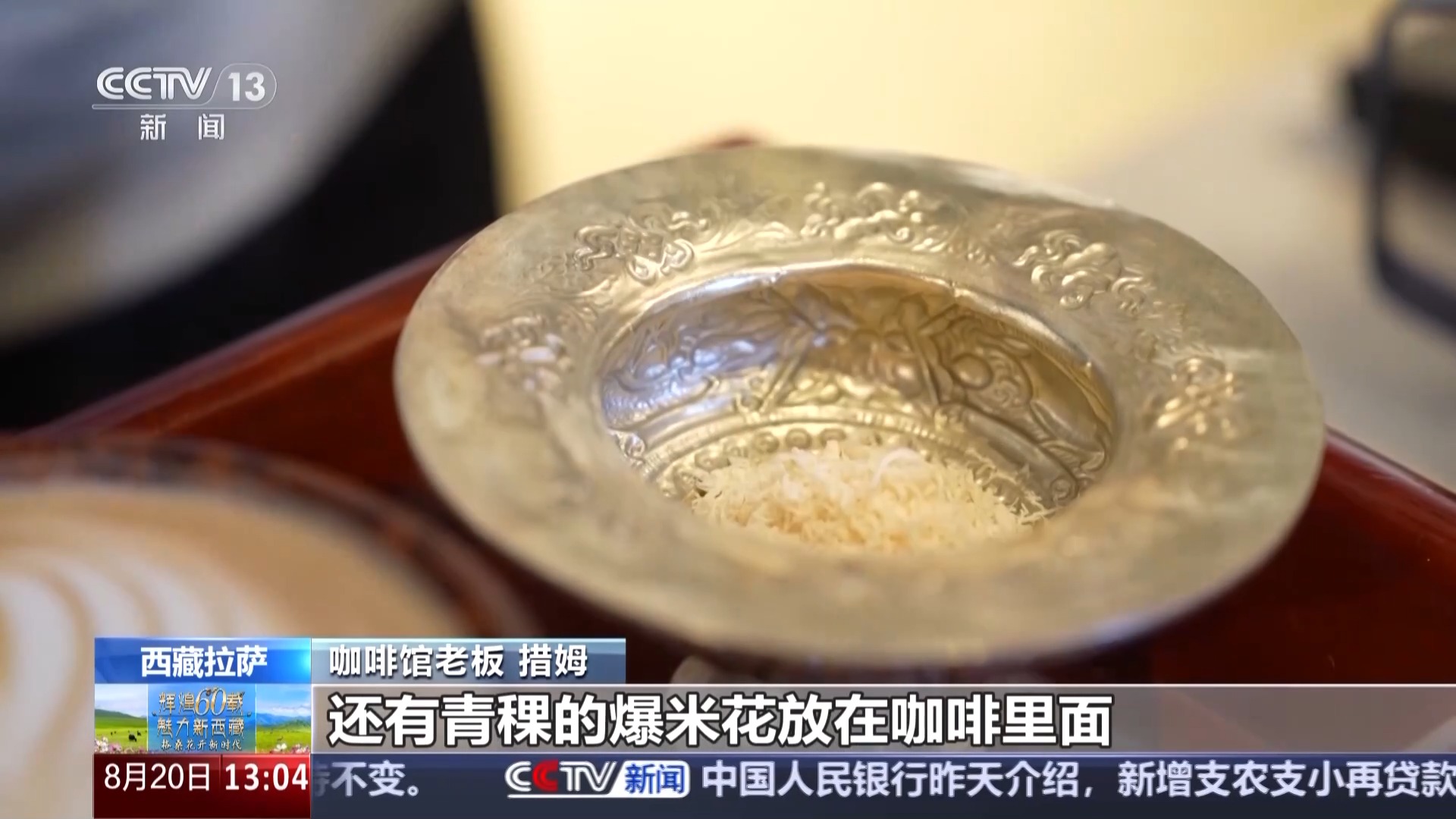咖啡館老板 措姆:這款是我們店里面賣得最火爆的一款原創(chuàng)產(chǎn)品——拉薩拿鐵,我們準備了牦牛奶的奶渣、酥油、青稞的爆米花放在咖啡里,讓客人體驗到西藏本地食材和咖啡融合的感覺。