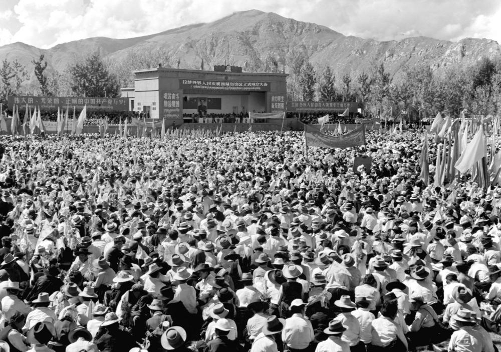1965年9月9日,西藏自治區(qū)首府拉薩市3萬多人集會,熱烈慶祝西藏自治區(qū)正式成立。(新華社記者 馬競秋攝)