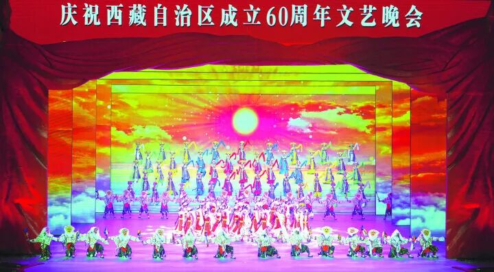 8月20日晚,慶祝西藏自治區(qū)成立60周年文藝晚會(huì)《雪域歡歌》在西藏大劇院舉行。晚會(huì)分為3個(gè)篇章,上篇《幸福的起點(diǎn)》《踏歌慶賀》《農(nóng)場五朵金花》等歌舞,展現(xiàn)了建設(shè)社會(huì)主義新西藏的生動(dòng)場景;中篇通過情境歌舞《奔跑的高原》、歌曲聯(lián)唱《家鄉(xiāng)美》、配樂講述《厚愛》,表現(xiàn)了改革開放給雪域高原帶來的蓬勃生機(jī);下篇通過《新的征程》《嘎拉村的歡笑》《琴鶴齊鳴》等作品,勾勒出幸福新西藏的美好圖景。每一個(gè)節(jié)目都是西藏當(dāng)下發(fā)展的縮影,表達(dá)了對(duì)未來美好的展望。