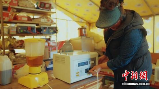 牧民使用“移動(dòng)式光儲(chǔ)一體微電站”制作酥油茶。毛一豐 供圖