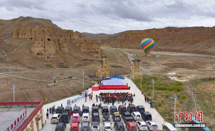 9月1日,參加“天上阿里·云巔自駕”活動(dòng)的游客在札達(dá)縣霞義溝土林景區(qū)參加開幕式(無人機(jī)照片)。閆志國 攝