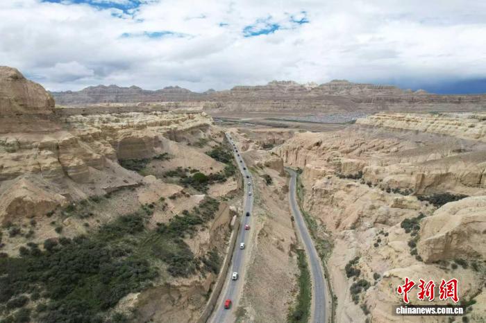 圖為9月2日,參加“天上阿里·云巔自駕”活動(dòng)的游客車隊(duì)行駛在札達(dá)縣土林景區(qū)(無人機(jī)照片)。閆志國 攝