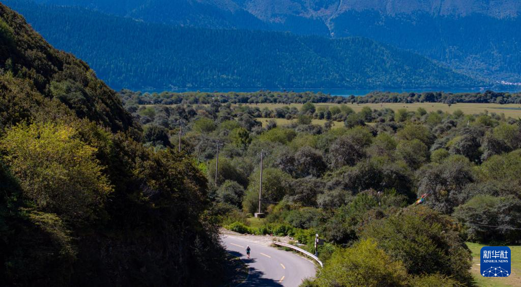 9月27日,參賽選手在賽道上奔跑(無(wú)人機(jī)照片)。新華社記者 格桑朗杰 攝