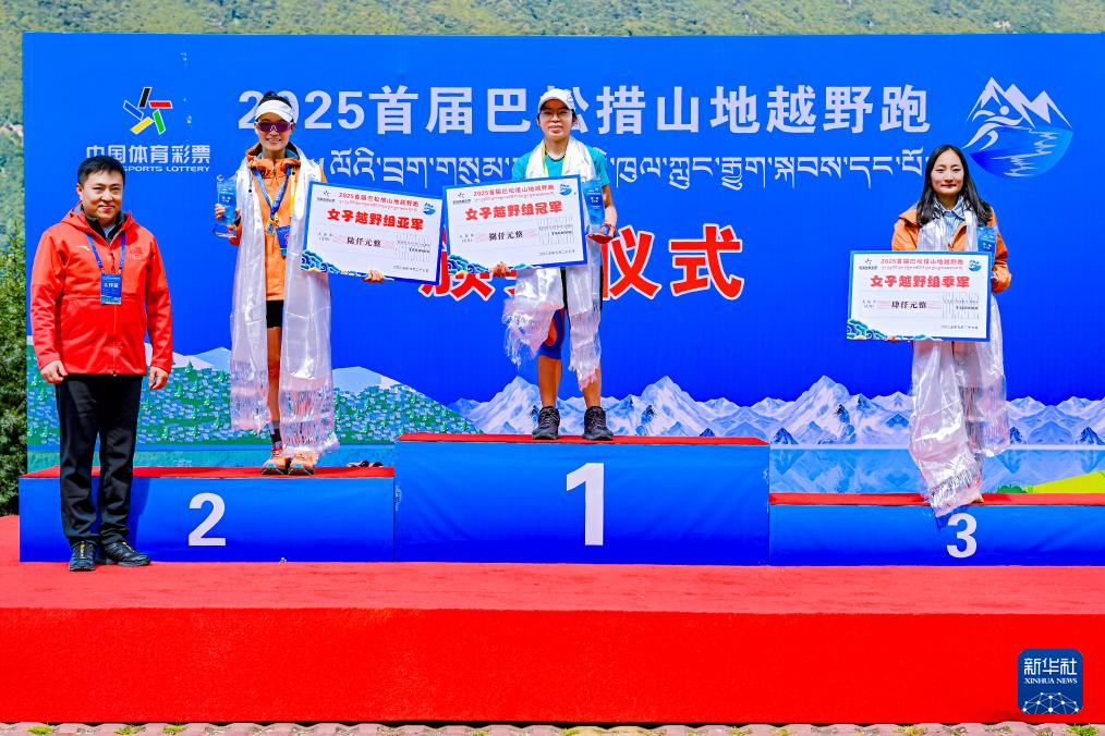 9月27日,30公里越野女子組冠軍周冬梅(右二)、亞軍歐陽(yáng)瓊(左二)和季軍羅秀容(右一)在頒獎(jiǎng)儀式上。新華社發(fā)