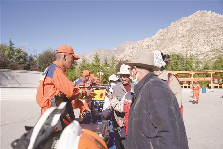 在資料發(fā)放環(huán)節(jié),大隊(duì)宣傳員向過往群眾遞發(fā)《森林防火條例》摘要手冊及防災(zāi)減災(zāi)科普折頁等宣傳資料200余份,確保防災(zāi)政策、防火常識“廣覆蓋、無遺漏”;案例講解環(huán)節(jié),宣傳人員結(jié)合周邊近年防災(zāi)減災(zāi)典型案例與森林火災(zāi)真實(shí)事件,用藏漢雙語解讀違規(guī)用火、災(zāi)害應(yīng)對不當(dāng)?shù)膰?yán)重后果,明確違反相關(guān)規(guī)定的法律責(zé)任,讓群眾直觀感受到防災(zāi)減災(zāi)與防火的緊迫性;裝備展示區(qū),專業(yè)救援車輛、滅火器材及救援裝備逐一陳列,大隊(duì)宣傳員細(xì)致講解各類裝備的用途與操作原理,既充分展現(xiàn)應(yīng)急救援實(shí)力,也有效加深群眾對防災(zāi)減災(zāi)、防火救援工作的認(rèn)知;有獎(jiǎng)問答與答疑環(huán)節(jié),通過趣味互動(dòng)充分激發(fā)群眾參與熱情,針對家庭用火安全、日常防災(zāi)避險(xiǎn)、林區(qū)作業(yè)防火等常見疑問,宣傳員耐心解答、細(xì)致指導(dǎo),做到“有問必答、解惑到位”。