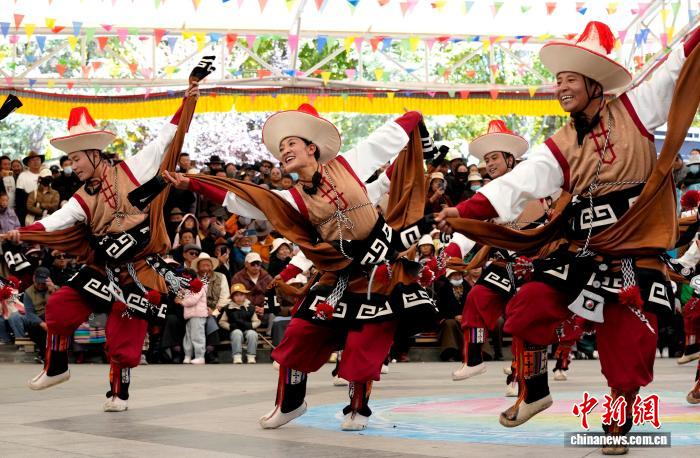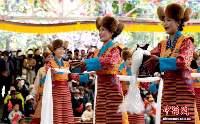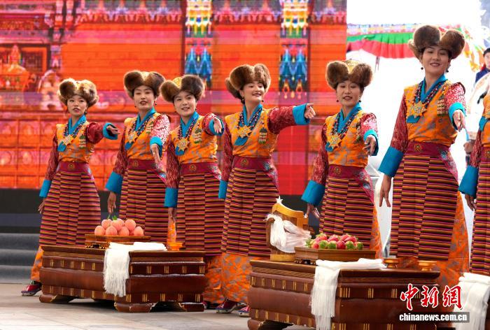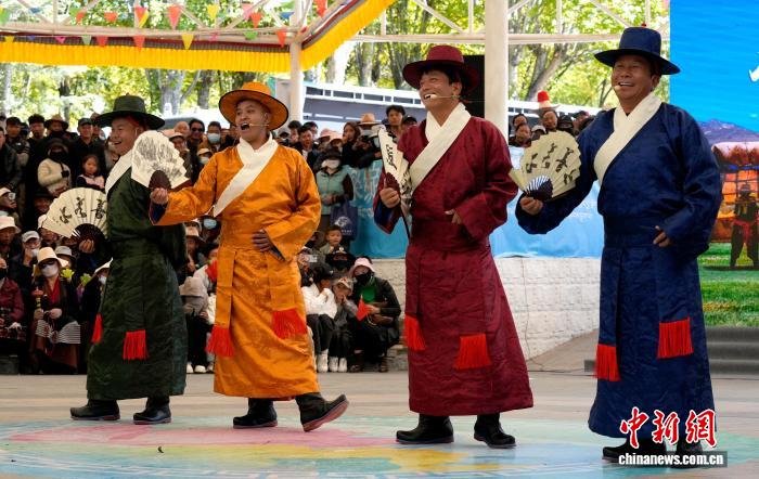 10月19日,“格桑花杯”拉薩市第六屆縣(區(qū))藝術(shù)團(tuán)文藝調(diào)演頒獎(jiǎng)活動(dòng)在布達(dá)拉宮腳下的宗角祿康公園舉行?,F(xiàn)場,拉薩市各縣(區(qū))藝術(shù)團(tuán)帶來精彩節(jié)目。圖為文藝調(diào)演頒獎(jiǎng)活動(dòng)上的文藝表演。中新社記者 李林 攝