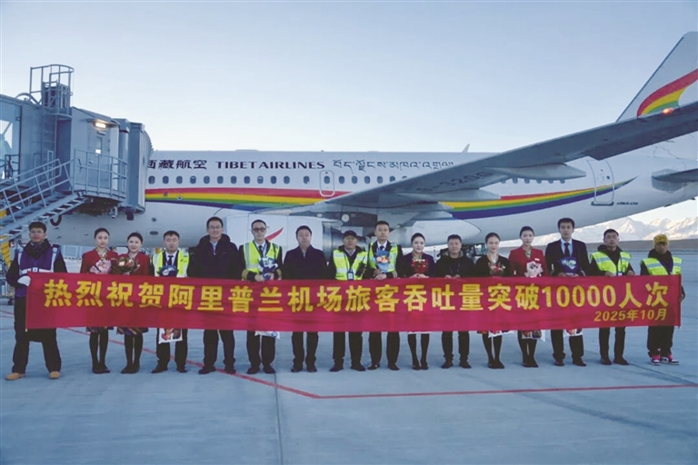 10月20日,西藏航空TV9705航班平穩(wěn)降落在阿里普蘭機(jī)場,作為阿里普蘭機(jī)場2025年第10000名旅客,乘客果果在工作人員的掌聲中走下飛機(jī),接受機(jī)場工作人員敬獻(xiàn)的哈達(dá)和鮮花。這一刻,是阿里普蘭機(jī)場實(shí)現(xiàn)年旅客吞吐量“從千到萬”的歷史性跨越。