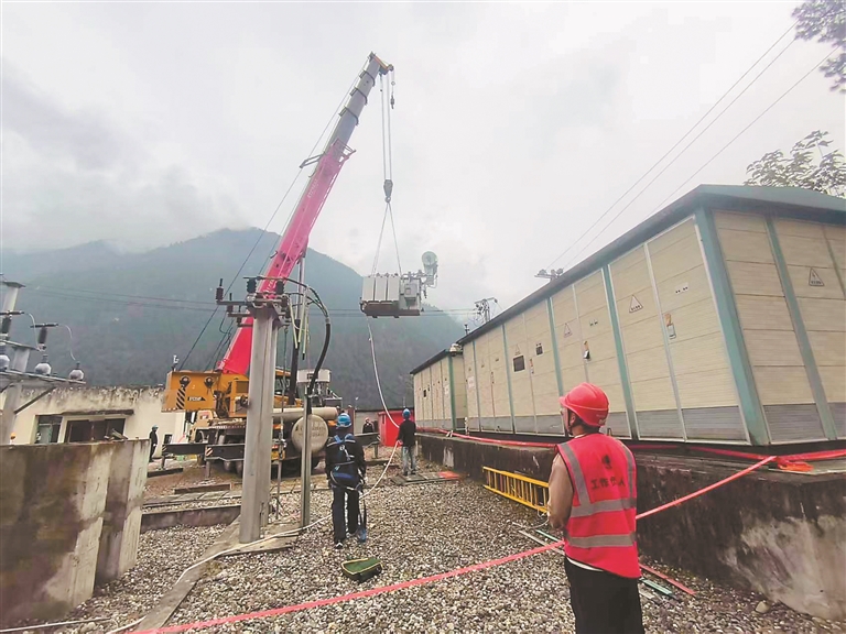 圖為國(guó)網(wǎng)察隅縣供電公司工作人員正在對(duì)變壓器進(jìn)行改造施工。記者 劉楓 攝
