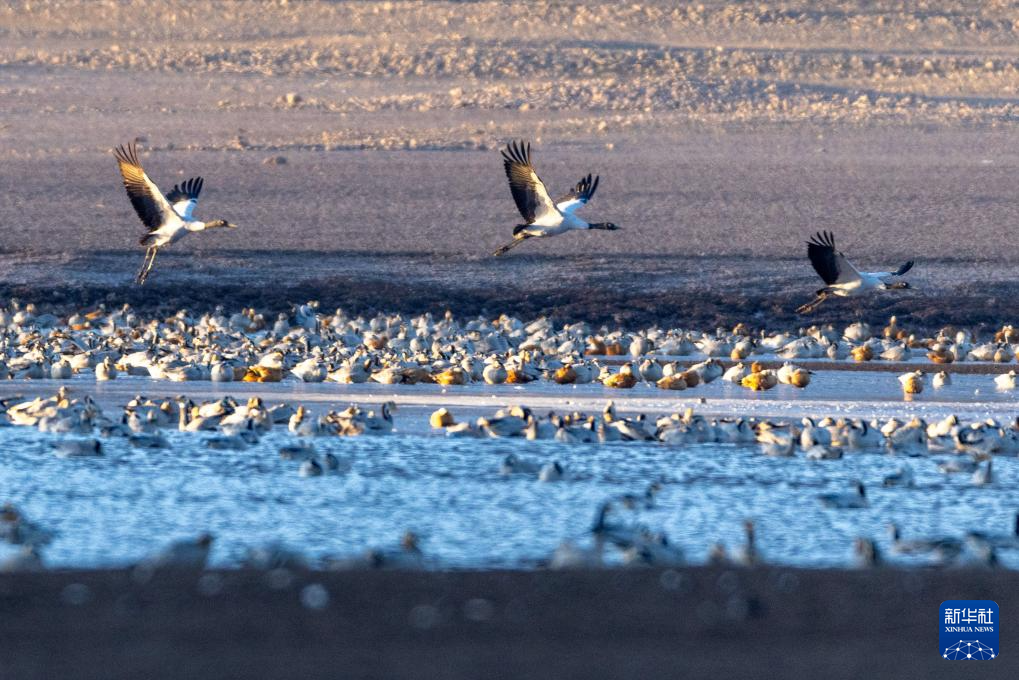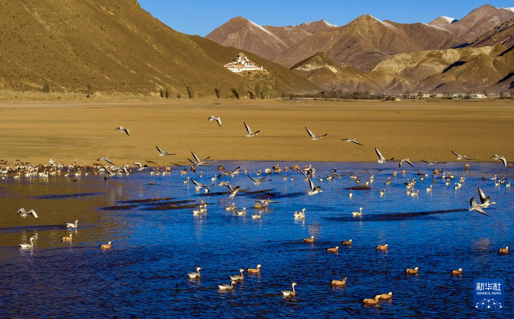 冬日時(shí)節(jié),拉薩市林周縣迎來大批越冬候鳥,黑頸鶴、斑頭雁、赤麻鴨等候鳥在河谷、湖泊等地覓食、休憩。