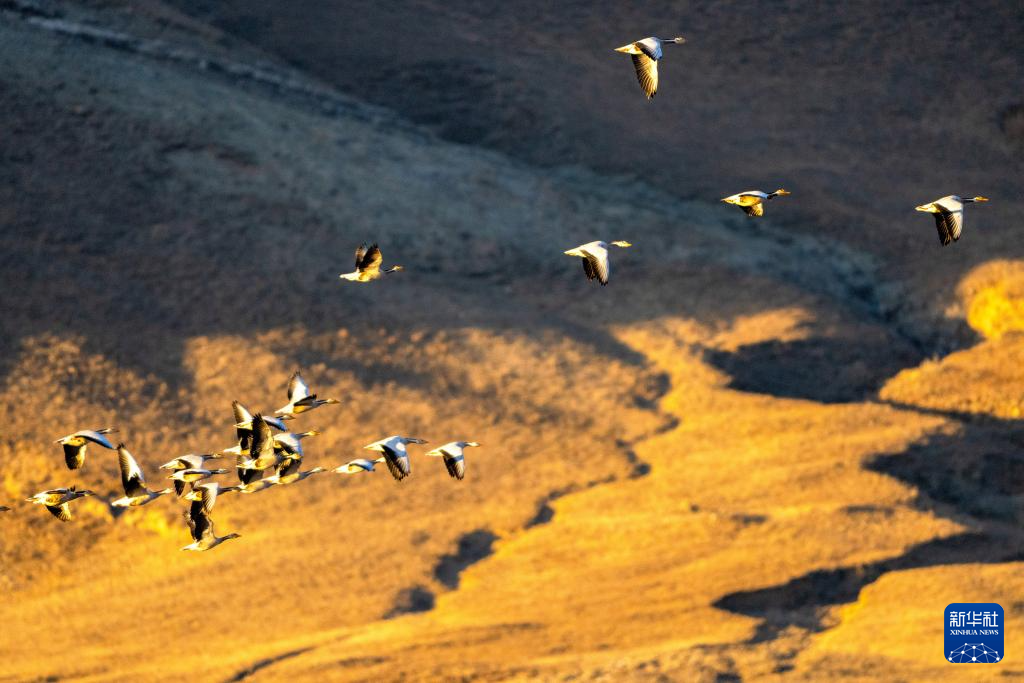 這是11月23日在西藏拉薩市林周縣拍攝的越冬候鳥。新華社記者 姜帆 攝