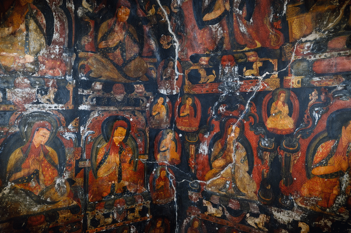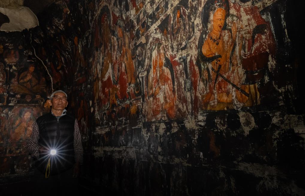 強巴次仁倚著洞口,聽著仁增旺扎的講解,瞇著眼望向那些畫。他看不太清壁畫的細節(jié)了,但半輩子的守護,已讓壁畫像是他生活的一部分——也是他所理解世界的一部分。