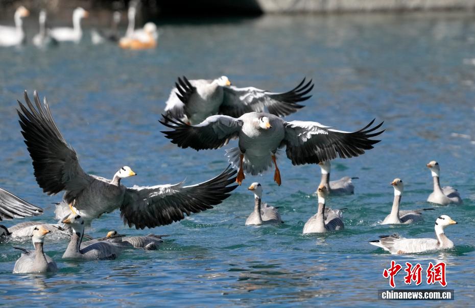 12月17日,西藏拉薩市區(qū)宗角祿康公園,大批斑頭雁“集結(jié)”越冬。成群結(jié)隊的斑頭雁等越冬候鳥吸引市民游客駐足觀賞、拍照留念。圖為宗角祿康公園越冬的斑頭雁。