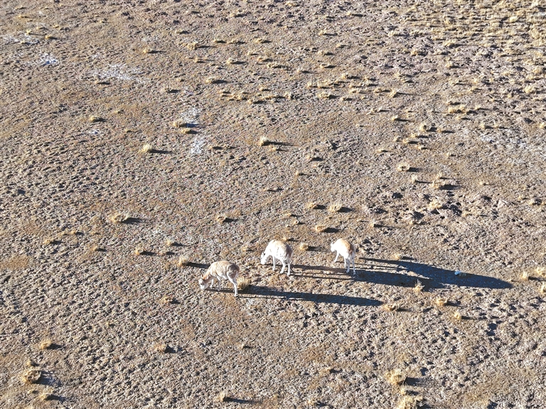 我們下車。未來(lái)得及扣上的外套瞬間被風(fēng)灌滿,幾乎要撕裂。雙手在寒風(fēng)中顫抖著拉上拉鏈。舉起手機(jī)、相機(jī),卻不知如何構(gòu)圖,有人笑著感嘆:“這片天地太大了,大得失去了參照。完全拍不出這份壯美?!彼餍源蠹野咽执Щ匾露担?80度轉(zhuǎn)動(dòng)著腦袋、用眼睛細(xì)細(xì)掃描,將羌塘高原的生態(tài)盛景直接刻入記憶。