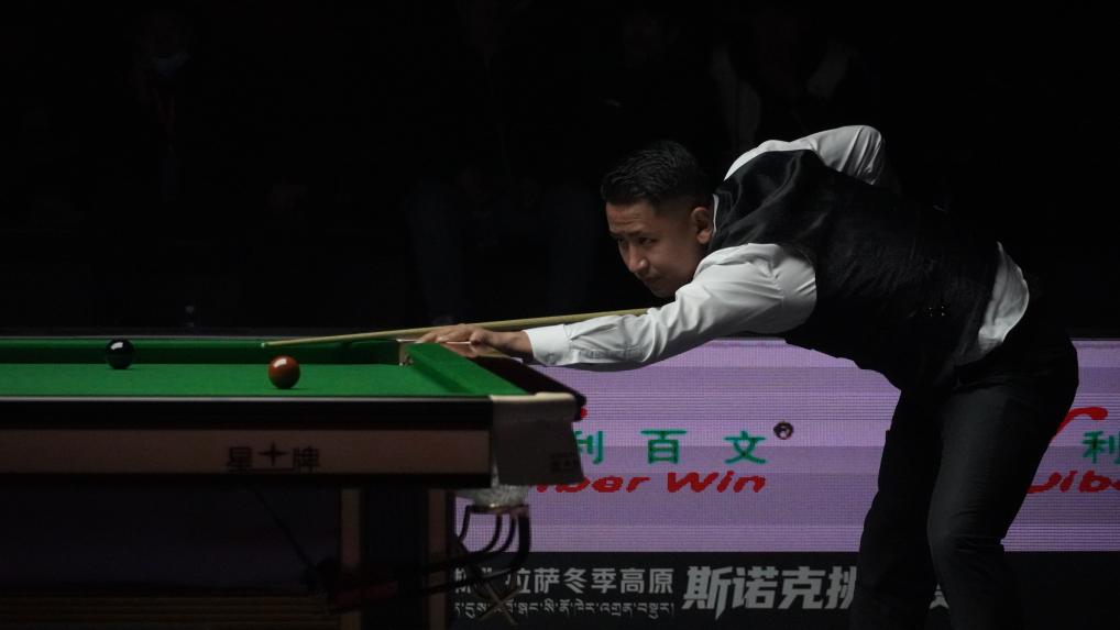 中國(guó)選手肖國(guó)棟在2025拉薩冬季高原斯諾克挑戰(zhàn)賽比賽中。新華社記者 晉美多吉 攝