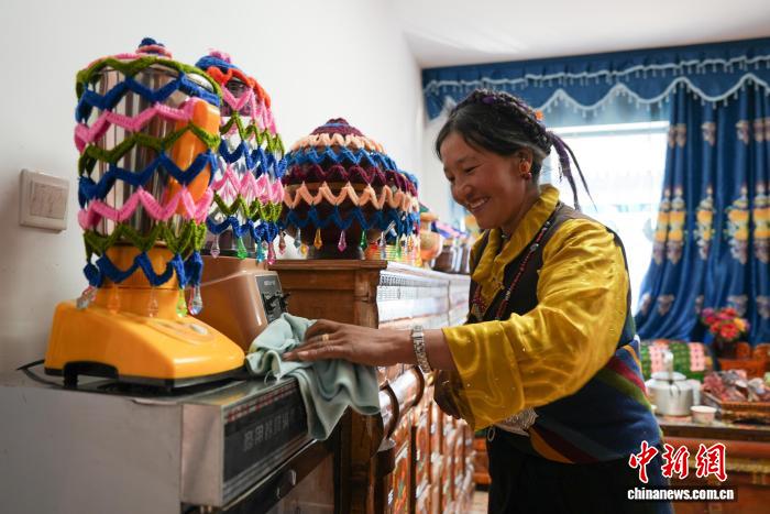 村民多布杰在森嘎村經(jīng)營(yíng)著一家甜茶館。從安置板房搬進(jìn)牢固的新居后,生活重回正軌。他在自家院中建起陽(yáng)光棚開(kāi)門(mén)迎客,每日顧客絡(luò)繹不絕?!靶路繉挸?,通了自來(lái)水,裝了太陽(yáng)能熱水器,房子都是鋼筋水泥建的,住著不害怕了?!闭劶澳菆?chǎng)災(zāi)難,他輕聲說(shuō):“只是偶爾想起離開(kāi)的長(zhǎng)輩和發(fā)小,心里還是會(huì)難過(guò)。”