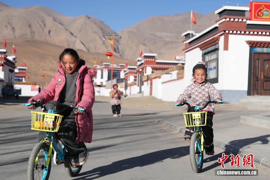 2025年1月7日,西藏日喀則市定日縣發(fā)生6.8級(jí)地震,造成重大人員傷亡。地震發(fā)生后,30天內(nèi)完成民房重建規(guī)劃、選址、設(shè)計(jì),90天內(nèi)完成災(zāi)后恢復(fù)重建總體方案編制和報(bào)審,震后100天內(nèi)進(jìn)入項(xiàng)目全面實(shí)施階段,220天實(shí)現(xiàn)災(zāi)后恢復(fù)重建首批入住目標(biāo),295天實(shí)現(xiàn)重建民房、維修加固民房基本建成并交付受災(zāi)民眾,在海拔4300米以上極度缺氧、建材短缺、施工力量薄弱的地震災(zāi)區(qū),創(chuàng)造了“當(dāng)年受災(zāi)、當(dāng)年入住”的重建奇跡。如今,民眾生產(chǎn)生活恢復(fù)秩序,他們將在新居內(nèi)迎接第一個(gè)日喀則農(nóng)事新年。圖為2026年1月5日,定日縣長(zhǎng)所鄉(xiāng)森嘎村,兩個(gè)小女孩在新房前騎車。貢確 攝