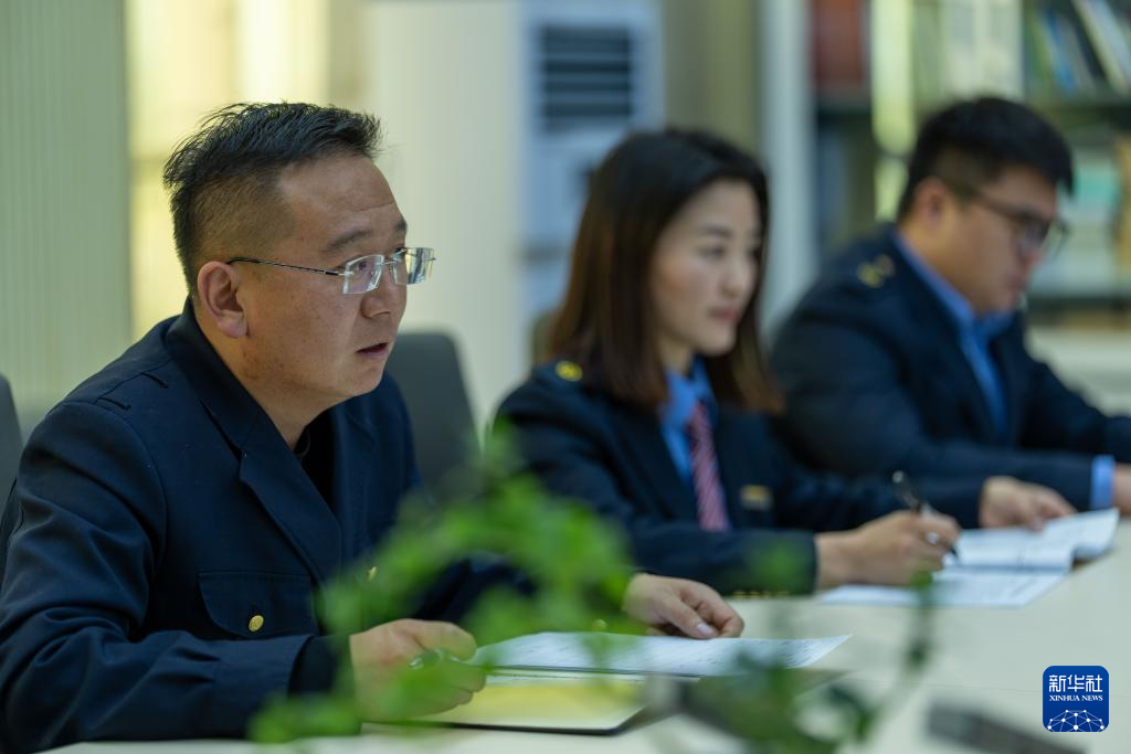 1月6日,拉薩基礎(chǔ)設(shè)施段安全生產(chǎn)指揮中心主任王義虎(左1),正在對當(dāng)日重點(diǎn)工作進(jìn)行重點(diǎn)提示。新華社記者 旦增尼瑪曲珠 攝