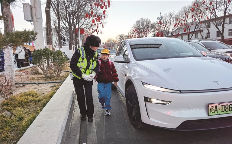在拉薩市第一小學(xué)江蘇路分校門口,記者看到民警在校園門口斑馬線、十字路口等關(guān)鍵位置定崗定責(zé),配合學(xué)校老師和安保人員形成聯(lián)動合力,引導(dǎo)學(xué)生排隊(duì)入校、安全通行。警燈閃爍、哨聲清脆,車流在民警的指揮下快速分流,原本繁忙的路段變得井然有序。家長卓女士告訴記者:“每天上學(xué)、放學(xué)都能看到民警在學(xué)校門口守護(hù),過馬路有人管、停車有秩序,我們接送孩子都特別放心。”