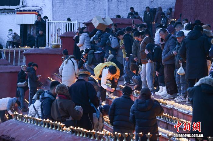 圖為燃燈日酥油燈點(diǎn)亮甘丹寺。 中新社記者 貢嘎來松 攝
