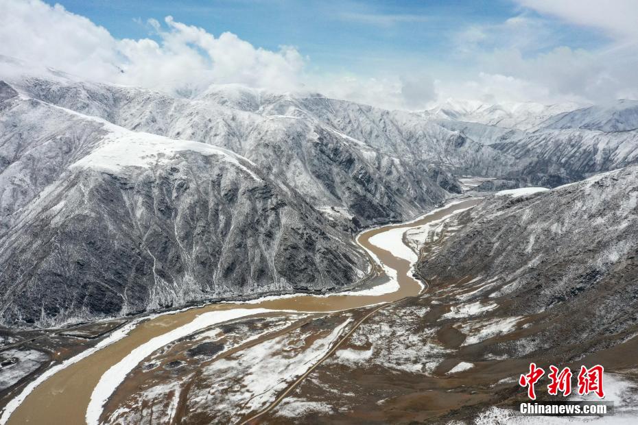 4月10日,航拍青海省玉樹藏族自治州壯美雪景。日前,青海省玉樹藏族自治州降下春雪,連綿的山巒被積雪點綴,與河流、山莊相映成趣,宛如一幅幅水墨畫卷,盡顯山河壯麗。圖為航拍青海省玉樹藏族自治州稱多縣雪景,盡顯山河壯麗。