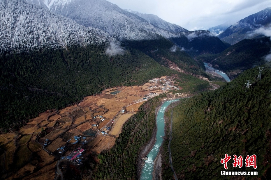 2月22日,航拍西藏林芝帕隆藏布雪景。林芝位于西藏東南部,平均海拔約3100米,氣候濕潤(rùn)。(無(wú)人機(jī)照片)
