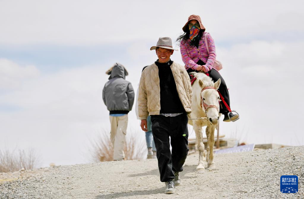 羊卓雍錯北岸的村民為游客提供騎馬服務(wù)(4月5日攝)。新華社記者 張汝鋒 攝
