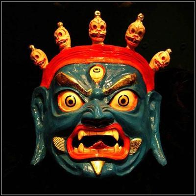 面具,藏語中稱“巴”,主要用于各種民間表演活動,它與人們?nèi)粘I睢趧?、娛樂有著直接的關(guān)系,遍及全區(qū)各地。西藏面具大致分為差姆(跳神)面具、藏戲面具、懸掛面具三類。面具的制作材料有金質(zhì)、皮質(zhì)、祭品、木質(zhì)、紙質(zhì)、泥質(zhì)、貼布脫胎等。由于地域的差異、用途的不同,西藏面具呈現(xiàn)出多姿多彩、對比強(qiáng)烈、形式各異的特點(diǎn)。