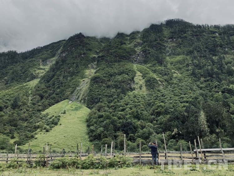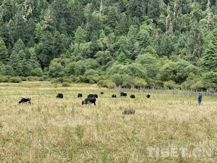 森林邊有一片大大的牧場(chǎng),我靜靜地躺下來(lái)。牧場(chǎng)遠(yuǎn)處有牦牛在吃草,聽村民講這是野牦牛,因?yàn)檫@里絕少有人來(lái),它們對(duì)人也沒(méi)有恐懼。