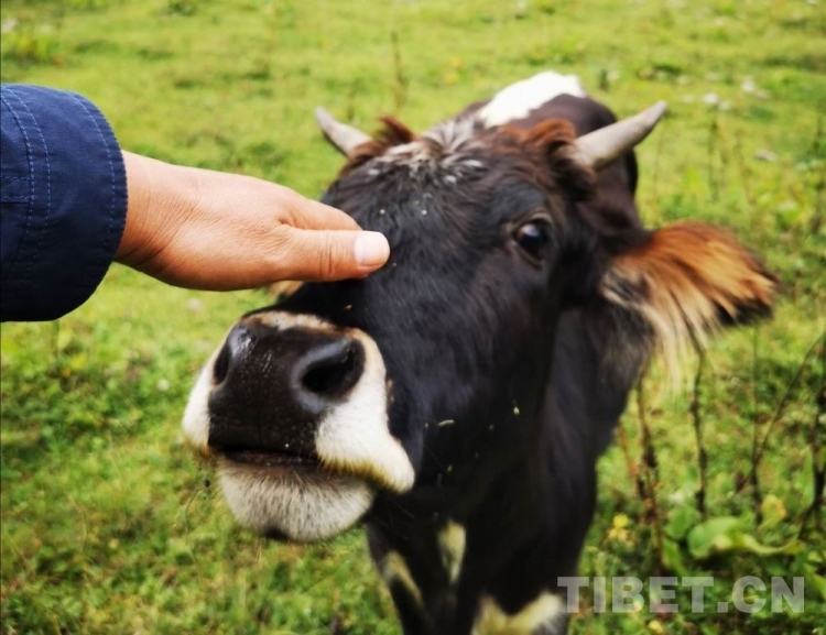 正在休息時(shí),近處傳來(lái)幾聲牛叫,我睜開眼,看見牛邊吃草邊向我走來(lái),其中一頭毛發(fā)油亮健壯的小牛向我越來(lái)越靠近,天生就喜歡動(dòng)物的我,看它毫無(wú)戒備地向我走來(lái),我伸出了手,它走到我身邊,嗅嗅我的手,用它濕濕的鼻子頂了頂,用它那長(zhǎng)長(zhǎng)的舌頭舔起了我的手和臉,舌頭舔在臉上濕漉漉的,它是在心疼著、療愈著、撫慰著我吧?我流淚了。