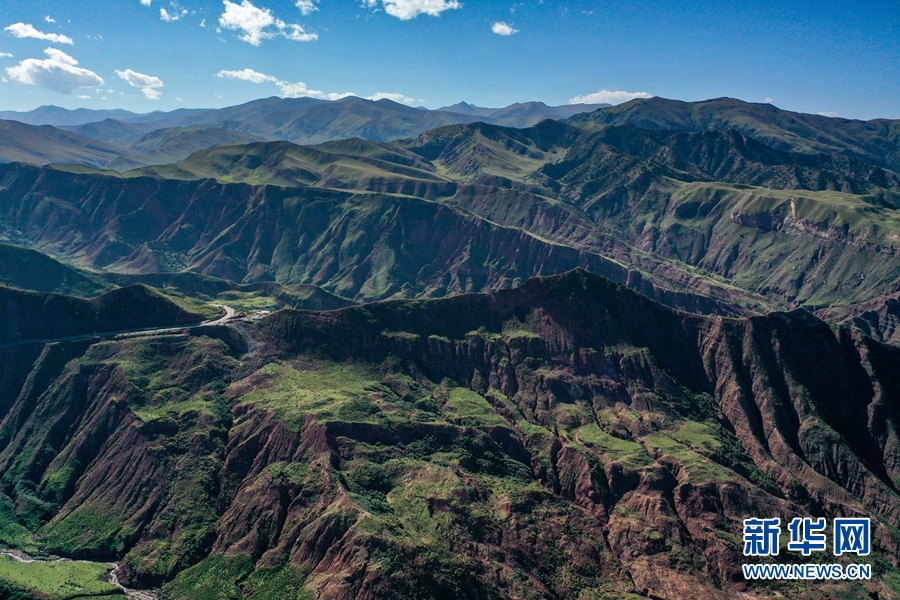 在果洛州瑪沁縣軍功鎮(zhèn),群山高聳,河流穿梭,氣勢(shì)磅礴。