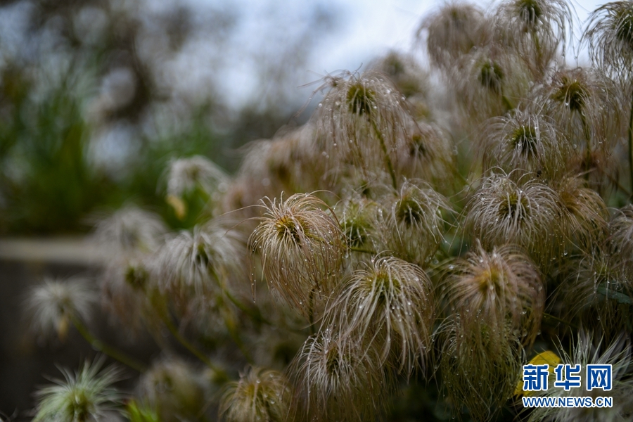 黃南藏族自治州同仁市的街道上,一簇甘青鐵線蓮在一場(chǎng)秋雨后掛上了玉珠。