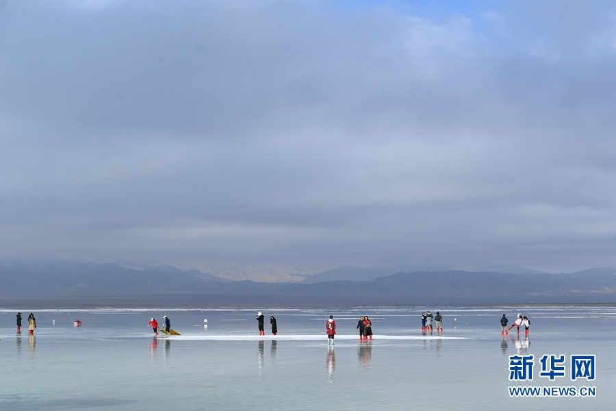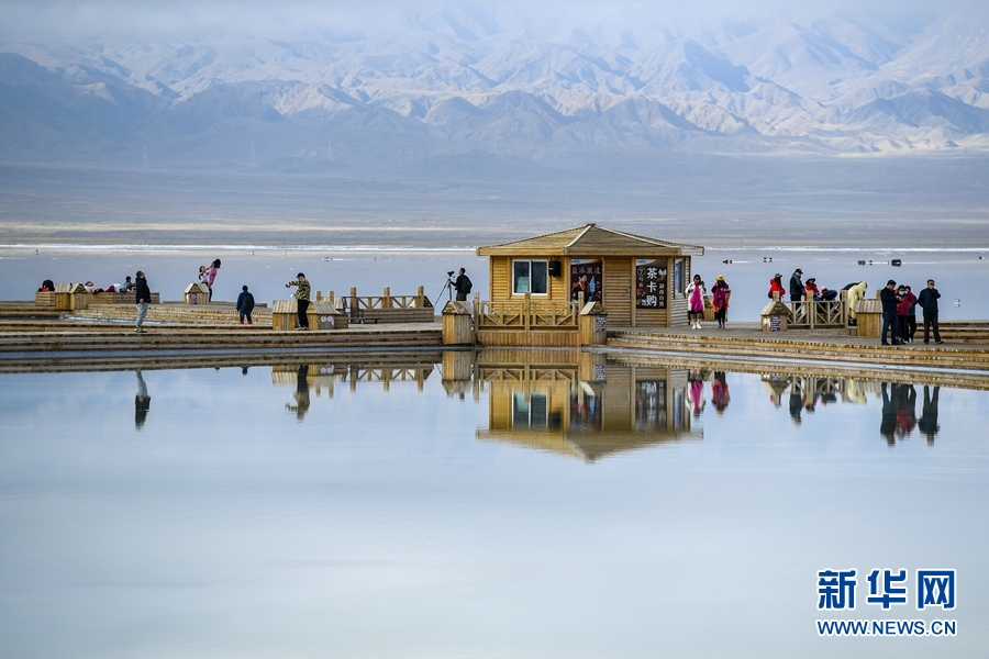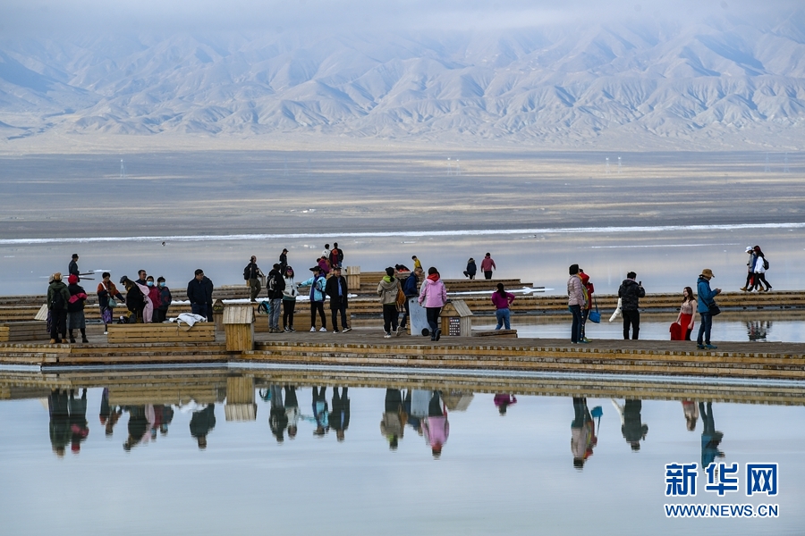 游客在茶卡鹽湖游玩。新華網(wǎng) 潘彬彬攝